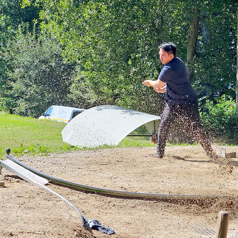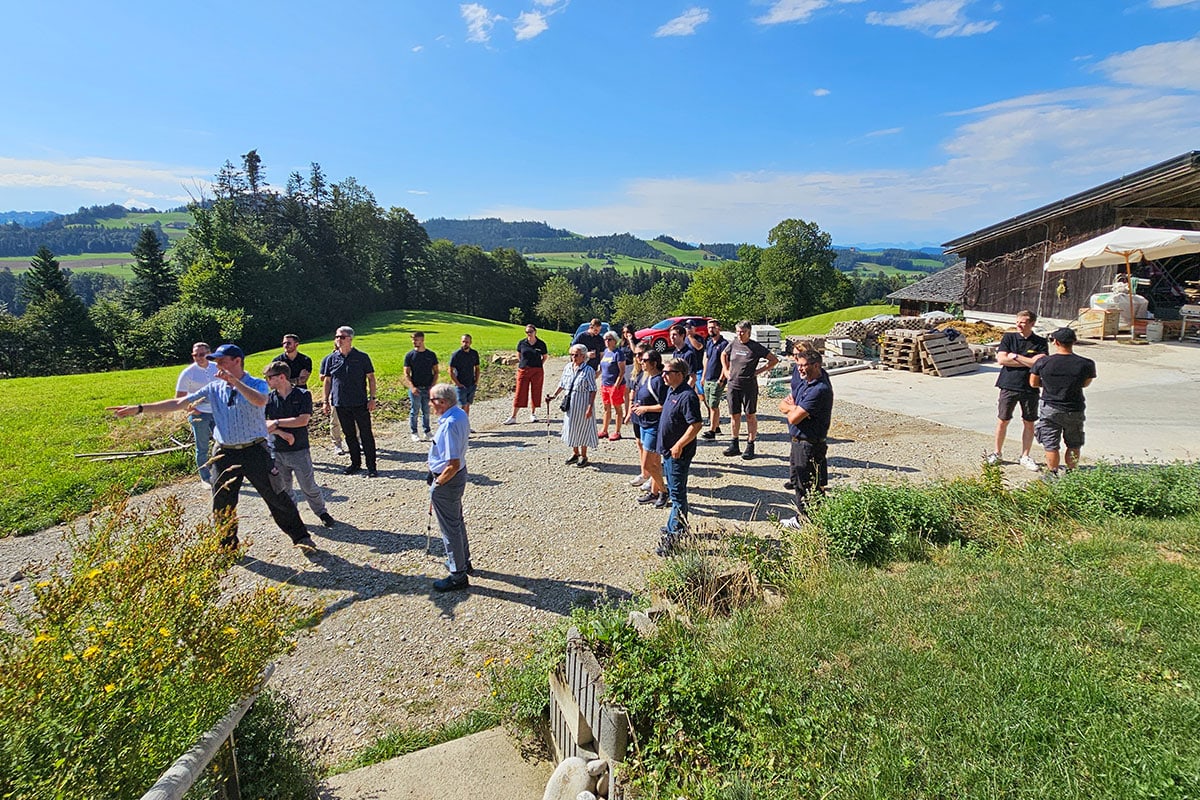 Und wie jedes Jahr gab es an einem Nachmittag eine kleine Abwechslung zur Arbeit auf dem Hof. Dieses Mal ging es auf den Trainingsplatz der Hornussergesellschaft Eriswil, wo uns die zwei Profis Stefan und Marcel das Spiel erklärten und uns anschliessend zeigten, wie eine Hornisse abgeschlagen wird. Jeder hat es probiert, die wenigsten haben es aber geschafft, die Hornisse so weit zu schlagen, dass sie in einem Spiel gepunktet hätten. Es ist nämlich gar nicht so einfach und die meisten unserer Lernenden hatten vorher noch nie etwas von Hornussen gehört. Fazit: Es war super lustig und würden wir wieder machen.