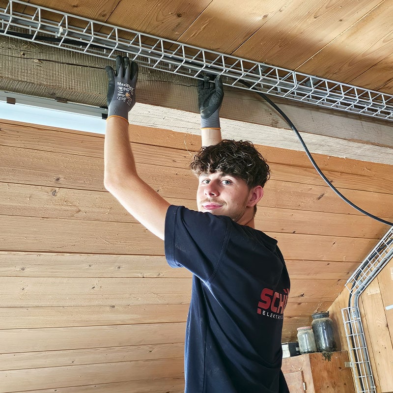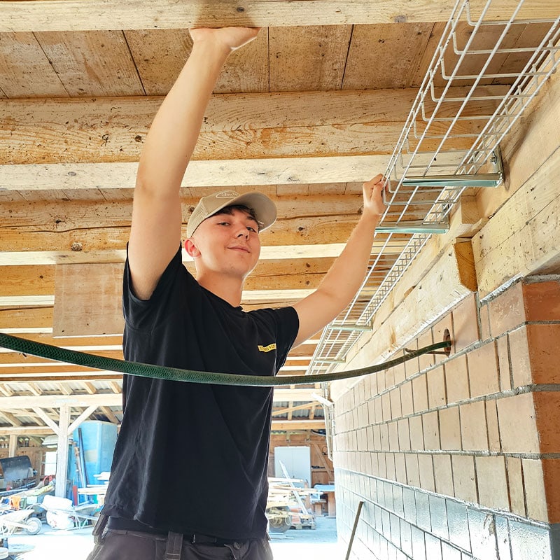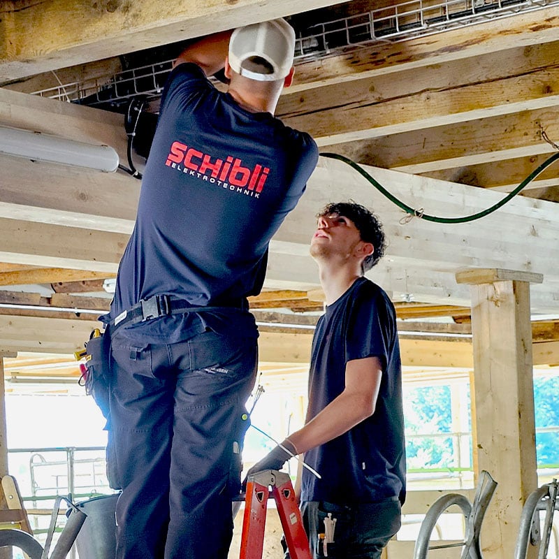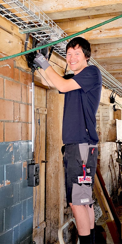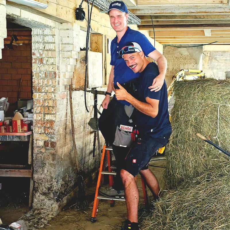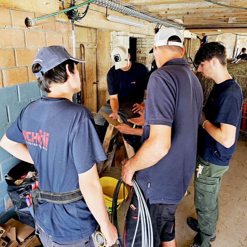 In der Hauenfluh in Sumiswald ist die Familie Gabriela und Niklaus Sommer mit ihren drei Kindern zu Hause. Nach der Übernahme des elterlichen Betriebs, hat Niklaus entschieden, auf Mutterkuhhaltung umzustellen und deshalb den bisherigen Kuhstall umgebaut. Die Aufgabe unserer Lernenden: Elektrifizierung und neue Beleuchtung im neu erbauten Stall. Zusätzlich wurden die Elektrik und das Licht im Heulager und in der Werkstatt erneuert, welche über dem neuen Stall liegen.