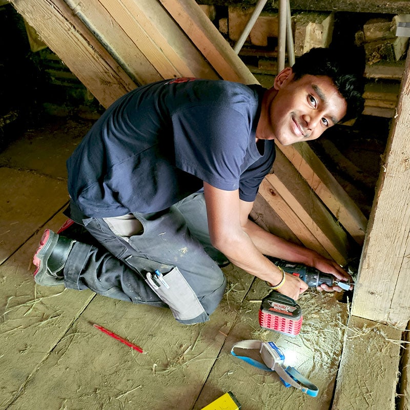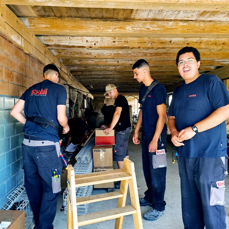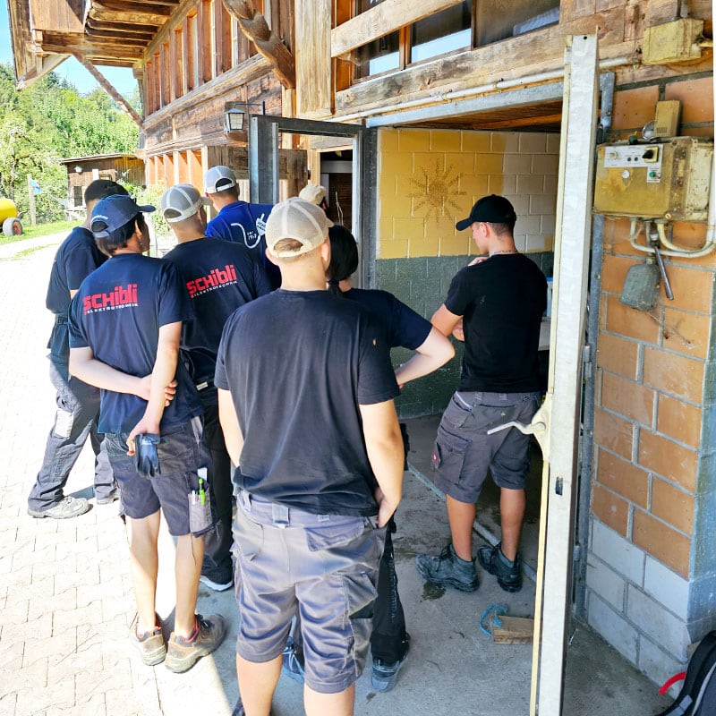 Ziel der Woche für die Lernenden war nicht nur, eine Familie mit unseren Arbeiten zu unterstützen, sondern vor allem auch eine Standortbestimmung für die LAP im kommenden Jahr. Denn die Lernenden mussten die Baustelle selber managen. Begleitet wurden sie von Elektroprofi Norbert Imboden und Berufsbildner Marco Grämiger. Während der Arbeit wurde deshalb auch geschult, abgefragt und gelehrt.